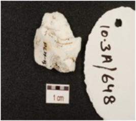 | Description / विवरण | A utilized flake made on chalcedony, flake scars on dorsal side and use wear marks along cutting edge. |