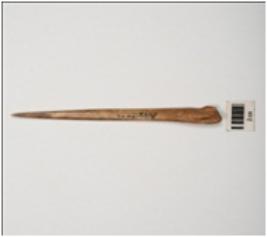 | Description / विवरण | A point made on bone, one end is sharp pointed and other is thicker, brown in colour, well polished surface. |