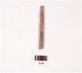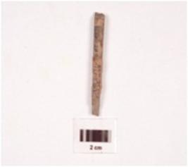 | Description / विवरण | Fragment of pointed arrow head stone, rectangular in section, greyish colour, smooth surface. |