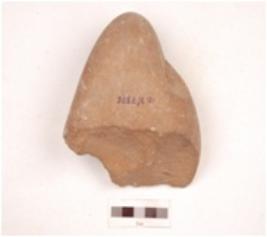 | Description / विवरण | Chopping tool made on quartzite pebble, biconvex in cross section, cortex partly intact on surface and wavy working edge. |