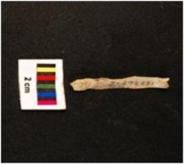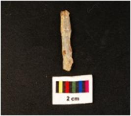 | Description / विवरण | Blade with middle ridge on dorsal surface. Use wear marks on both working edges. Proximal end with platform visible distal end broken. |