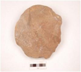 | Description / विवरण | Chopping tool made on quartzite end struck flake, cortex partly intact on one side, plano-convex in cross section and wavy working edge. |