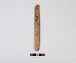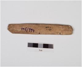 | Description / विवरण | Chisel on bone with smooth surface and flat surface, two grooved line on surface and rectangular in section. |