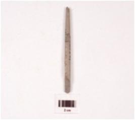 | Description / विवरण | Fragment of pointed arrow head stone, circular in section, damaged one end greyish colour, smooth surface. |