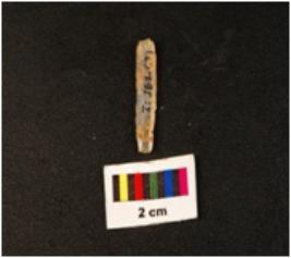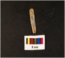 | Description / विवरण | Blade with blade scars on dorsal side, use wear marks on working edges, proximal end has bulb on ventral side. |