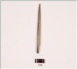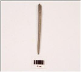 | Description / विवरण | A point made on himalayan soft stone having square section with partly broken sharp point, polished surface and the thick end also broken. |