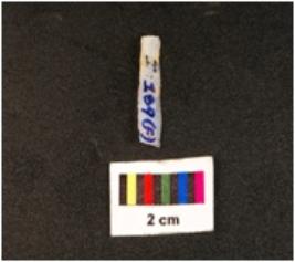 | Description / विवरण | A balde with a mid-ridge on dorsal side, triangular section, use wear marks along the cutting edges. |