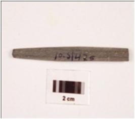 | Description / विवरण | A point made on himalayan soft stone, both ends broken, polished surface and circular in section. |