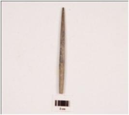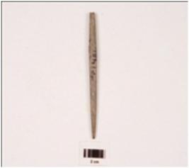 | Description / विवरण | A stone point with circular cross section and polished surface. |