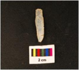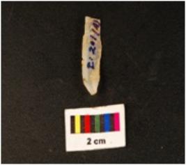 | Description / विवरण | Parallel sided microlith blade with double ridge on dorsal. Diffused bulb on ventral side and trapezoid in section, use wear marks on cutting edges. |