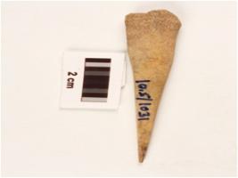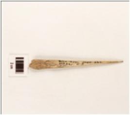 | Description / विवरण | Bone point, intact, sharp pointed end, smooth polished surface. |