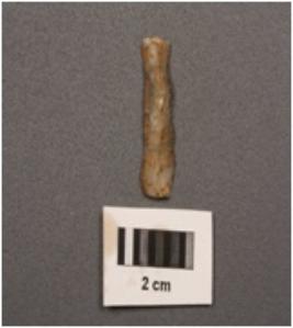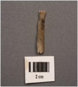 | Description / विवरण | Microlithic blade with wavy mid ridge on dorsal. Triangular in section and use wear marks on cutting edges. |