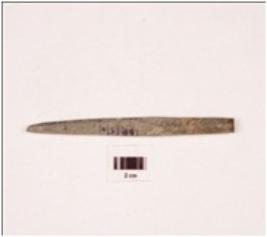 | Description / विवरण | A stone point with oval cross section, polished surface and broken from both ends. |