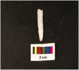 | Description / विवरण | Blade with flake scar on dorsal surface and use wear marks on both the working edges, broken at distal end and proximal end has diffused bulb on ventral side. |