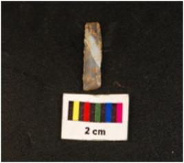 | Description / विवरण | Blade with proximal and distal end broken. Heat treatment given, blade scar visible, use wear marks visible on working edges. |
