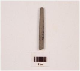 | Description / विवरण | An elongated stone point, broken from both ends round in section, charcoal black in colour, polished surface. |