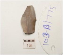 | Description / विवरण | An end struck flake made on chert, prepared platform and blade scars on dorsal side. |