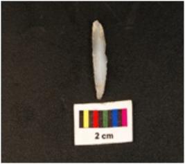 | Description / विवरण | Pen knife shaped chalcedony blade, irregular edges, single ridge on dorsal, diffused bulb, distal end. |