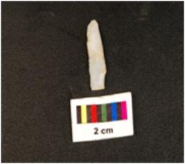 | Description / विवरण | A balde with a mid-ridge on dorsal side, triangular in section, diffused bulb on ventral side, use wear marks along the cutting edges. |