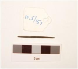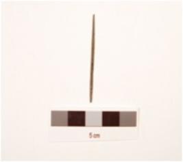 | Description / विवरण | Copper needle with both ends pointed, slightly corroded surface. |