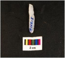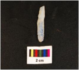 | Description / विवरण | A blade with a mid-ridge on dorsal side, triangular section, use wear marks along the cutting edges and diffused bulb on ventral side. |