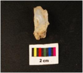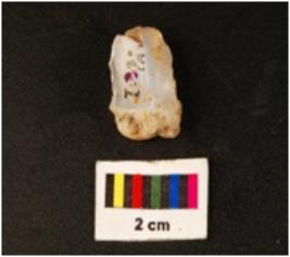 | Description / विवरण | Fragment of blade core. Cortex visible on proximal end, prepared platform. Distal end broken. |