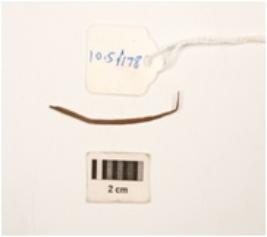 | Description / विवरण | Needle with a pointed end, slightly bend corroded surface. |