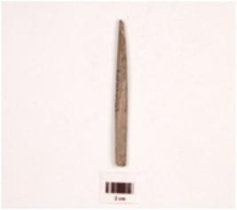 | Description / विवरण | An elongated stone point, tip is missing broken from bottom charcoal black in colour, rectangular section, polished surface. |