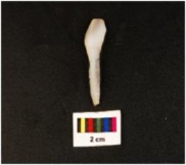 | Description / विवरण | Pen knife shaped chalcedony blade, use wear edges, distal end, diffused bulb, single ridge on dorsal. |