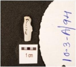 | Description / विवरण | A chert blade with triangular cross section, prepared platform, prominent bulb on ventral side and use-wear marks along the cutting edge. |