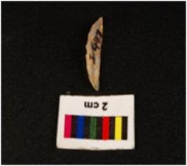 | Description / विवरण | Crecent shape microlith blade with use wear marks on cutting edges and prominent mid ridge on dorsal, it has sharp pointed ends and diffused bulb on ventral side. |