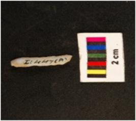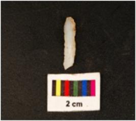 | Description / विवरण | Parallel sided microlith blade with prominent single ridges on dorsal and trapezoid in section. Diffused bulb on ventral side and use wear marks on cutting edges. |