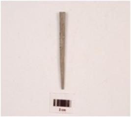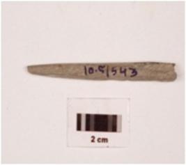 | Description / विवरण | An elongated stone point, charcoal black in colour, tip is missing, bottom is broken, round section, polished surface. |