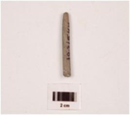 | Description / विवरण | An elongated stone point, charcoal black in colour, one end is tapered, broken from bottom polished surface. |