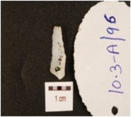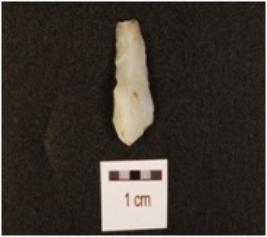 | Description / विवरण | A chert blade with triangular cross section, use-wear marks along the cutting edge and prepared platform. |