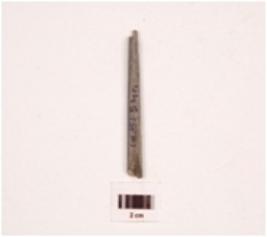 | Description / विवरण | An elongated stone point, charcoal black in colour, both ends are segmented rectangular in section, polished surface and flat. |