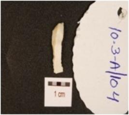 | Description / विवरण | A chert blade with prepared platform, triangular cross section and use-wear marks along the cutting edge. |