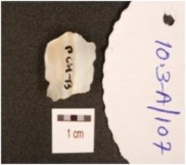 | Description / विवरण | A chert endstruck flake with two blade scars and flake scars. |