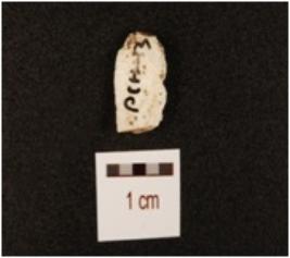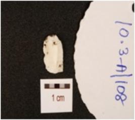 | Description / विवरण | A chert blade with triangular cross section, prepared platform, prominent bulb on ventral side and use-wear marks along the cutting edge. |