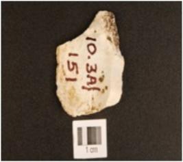 | Description / विवरण | A flake made on chert, prepared platform and prominent bulb at ventral side. |