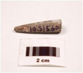 | Description / विवरण | An elongated stone point, conical in shape, charcoal black in colour pointed tip, broken from bottom, round section, polished surface. |