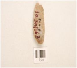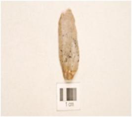 | Description / विवरण | A broken blade has prepared platform, diffused bulb at ventral side and use wear marks on edges. |