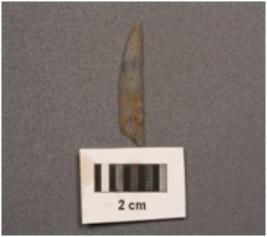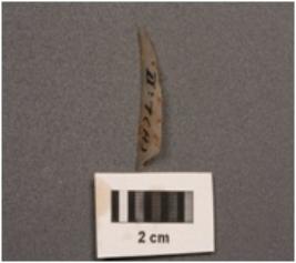 | Description / विवरण | Microlith crecent shape with mid ridg on dorsal, triangular in section. Tapering end and broken at distal end. |
