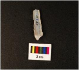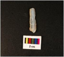 | Description / विवरण | A blade with mid-ridge on the dorsal side, trapezoidal in section, use wear marks along the cutting edges, diffused bulb on ventral side. |