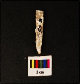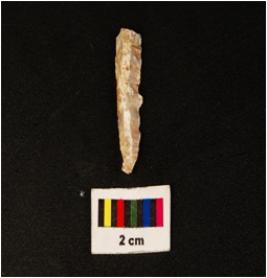 | Description / विवरण | Parallel sided microlithic blade with ridges on dorsal side, diffused bulb on ventral side, trapezoid section. |