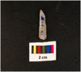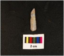 | Description / विवरण | A blade with two ridges on dorsal side, use wear marks along the cutting edges. |