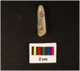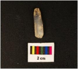 | Description / विवरण | A blade with two ridges on the dorsal side, use wear marks along the cutting edges, diffused bulb on ventral side. |