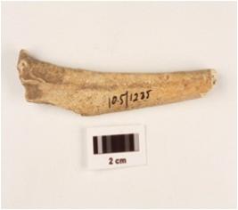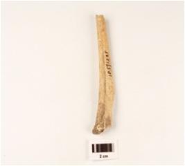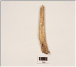 | Description / विवरण | A broken bone point, chipped off distal and proximal ends, polished, uneven bone surface. |