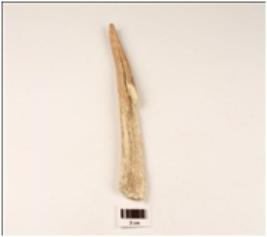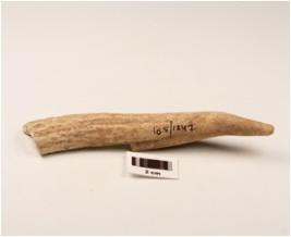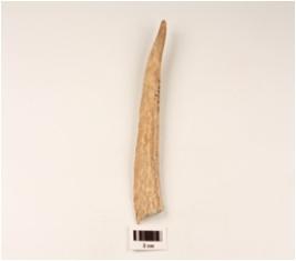 | Description / विवरण | A fragment of horn point half broken, running scar on surface, tip is intact. |
