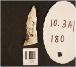 | Description / विवरण | A blade made on chert, double ridged, use marks along the cutting edges and trapezoidal cross section. |